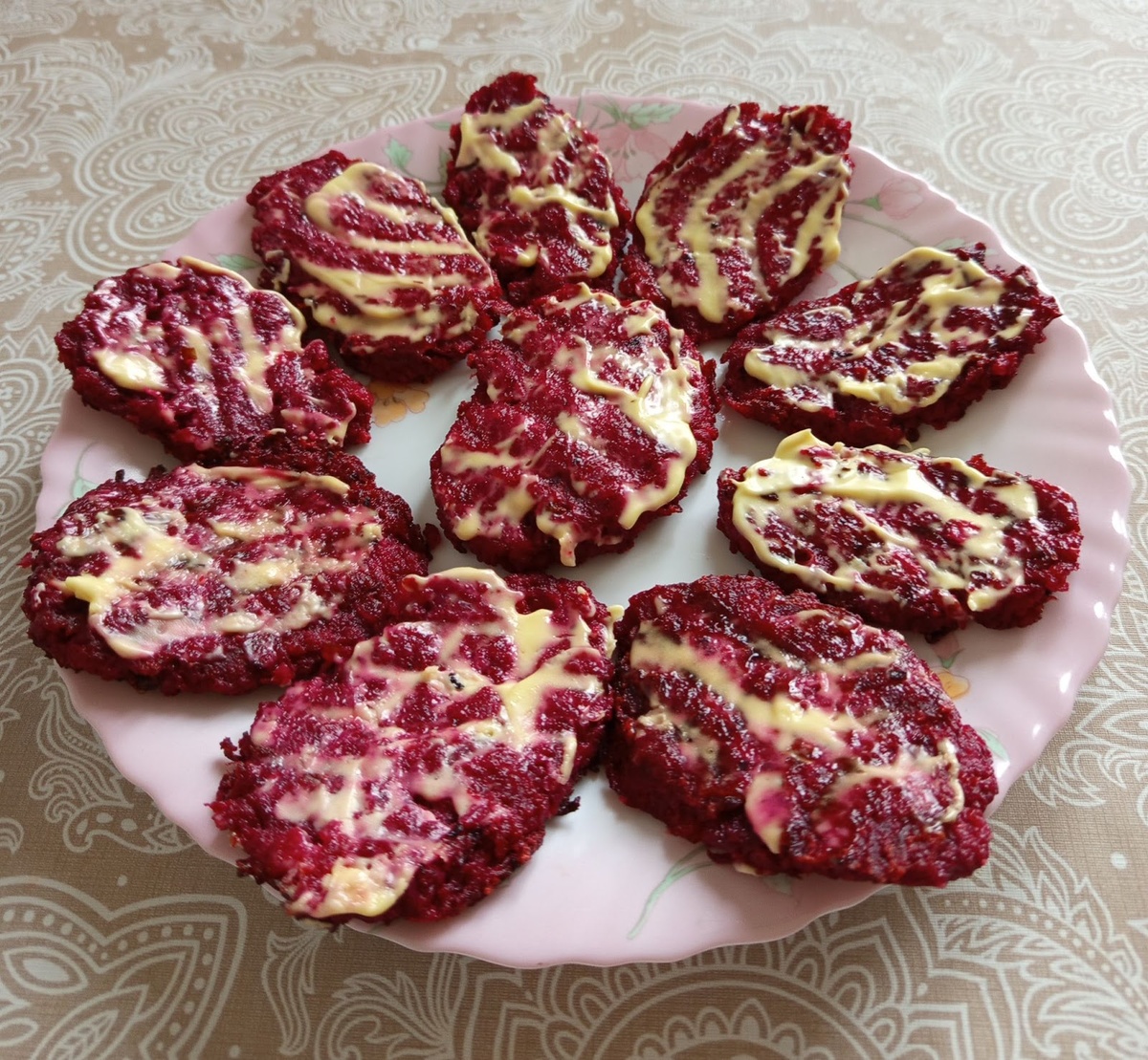 Привет, друзья! Предлагаю вам рецепт вкусных свекольных котлет, которым поделилась со мной коллега по работе. Я сразу в них влюбилась и часто готовлю дома. Думаю, что они понравятся любителям полезной и вкусной пищи. Свеклу сварить или запечь в кожуре, остудить, очистить и натереть на мелкой тёрке. Лук очистить, мелко нарезать кубиком, обжарить до золотистого цвета. Смешать свеклу, лук, яйца, манку, добавить соль по вкусу. Оставить на 30 минут. Столовой ложкой выложить на разогретую с маслом сковороду, аккуратно сформировать ложкой котлету и пожарить с двух сторон на среднем огне до готовности.❗ Важно следить, чтобы они не подгорели, от этого зависит вкус блюда. ☝️Если котлеты разваливаются, добавьте еще манной крупы. Когда котлеты будут готовы, сложить их на тарелку и смазать майонезом. Можно смазать 20% сметаной. Можно есть как в горячем, так и в холодном виде. Выход: 20 -22 штуки 🍽️Приятного аппетита! Буду благодарна за лайк и подписку)