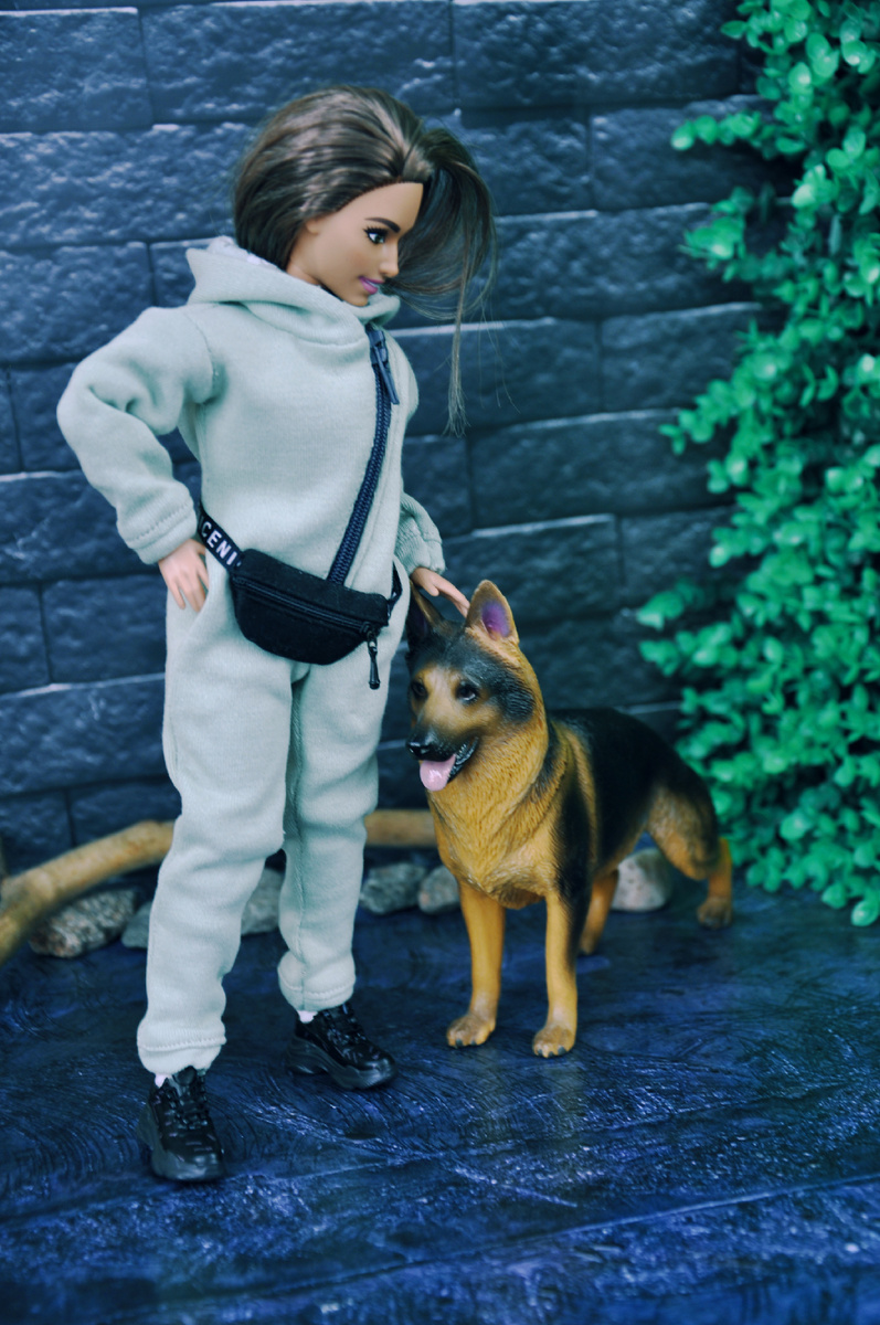 Знакомьтесь, это Дана и её верный друг - Рэкс! Дана - новый персонаж в Кукольной Долине, и она связана с одним из наших героев, но пока я не знаю, когда дело дойдёт до их встречи. Я мечтала поучаствовать с ней в конкурсе «Топ-модель XL», но надо трезво оценивать свои возможности и расставлять приоритеты😅 И сейчас на первом месте съемки сериала, которые конкретно затянулись, и я надеюсь вы всё-таки ещё ждёте его продолжение…и дождётесь!😂 Дана с прошлого лета сидела на полке, мечтала о собаке и новой одежде для прогулок с собакой. Собаку я ей быстро подарила, а вот с одеждой вопрос затянулся. И неожиданно решился на днях. Опять же, всё не случайно…Не случайно мы с дочкой оказались в больнице, и там произошло моё знакомство с одной очень интересной мамой мальчика, с которыми мы провели неделю в одной палате. Мы очень легко и весело начали общаться, не смотря на нелегкую ситуацию со здоровьем у наших детей. Я рассказала ей о своём хобби, не без стеснения, но она с большим интересом и