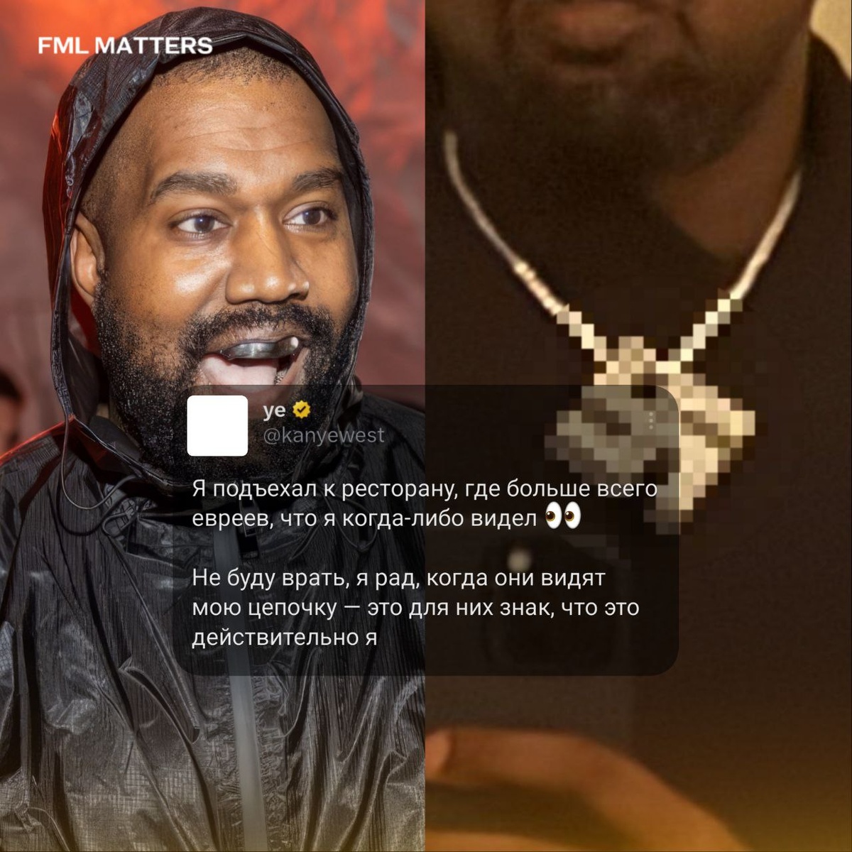 Йе опубликовал в Твиттере (Х) пост о посещении ресторана с большим количеством евреев, где он выразил удовлетворение их реакцией на свою цепочку со свастикой.