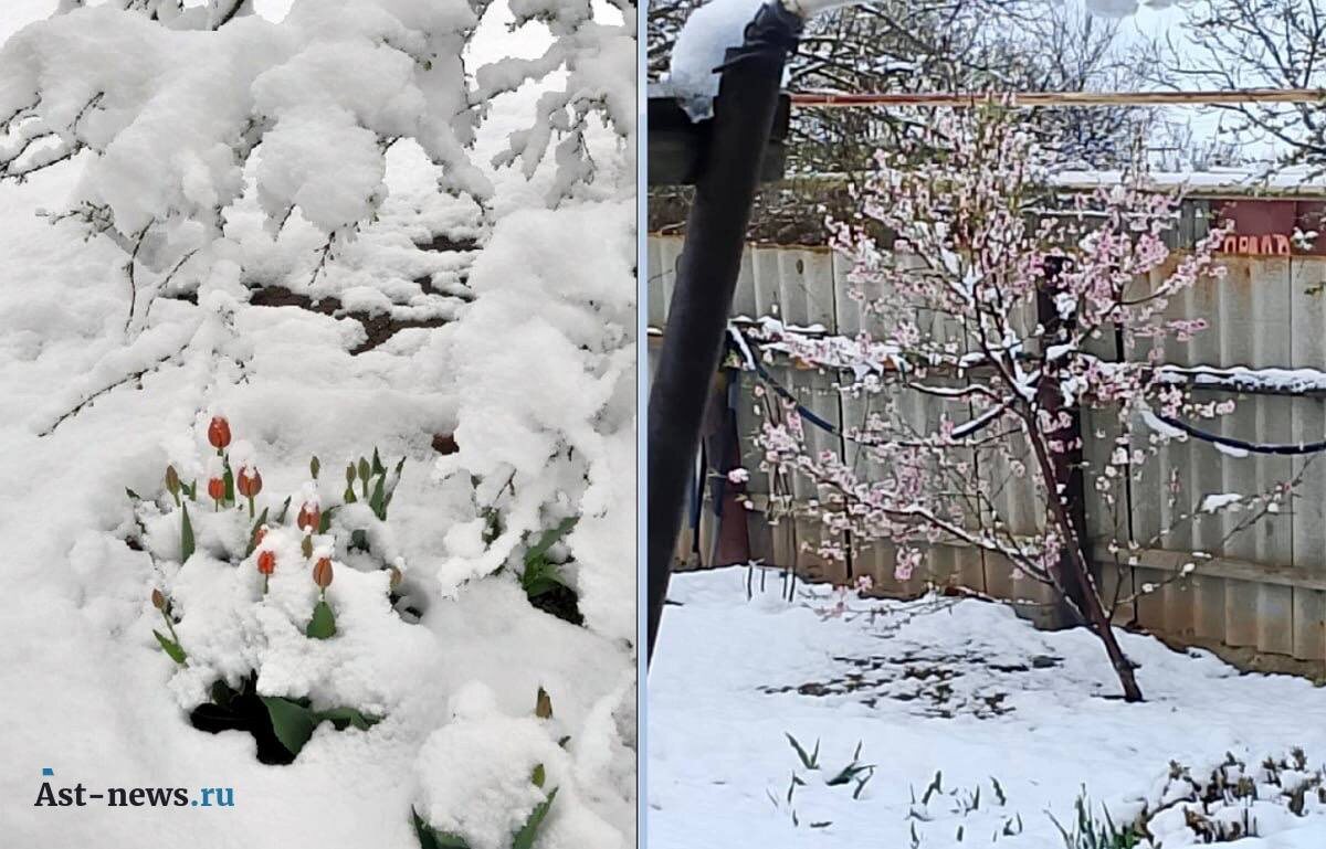 Европейская часть нашей страны подверглась на этой неделе снежному нападению. Сначала заснеженные пейзажи астраханцам присылали их родственники и знакомые из средней полосы России, но теперь не типичная для середины весны стихия настигла районы Астраханской области. Так, снегом засыпало не только ахтубинский Бачкунчак, но и Енотаевский район. «Персик цветёт, запах был – обалденный. А теперь отвалятся плоды», – констатирует наша землячка из села Ветлянка. Раннее цветение плодовых деревьев и кустарников из-за непогоды может обернуться неурожаем ряда сельскохозяйственной продукции. Особенному риску подвергаются косточковые плоды – персики, абрикосы, вишня, черешня. До заморозков почвы дело вроде не дойдёт, но ближайшей ночью столбик термометра опустится до +2. 11 апреля воздух прогреется до +12, а в субботу – до +14. Новая неделя обещает вернуть потерянный апрель, стартовав с дневной температуры в +18 и достигнув к 17 апреля +24. Будем верить, что большая часть плодовых насаждений пережив