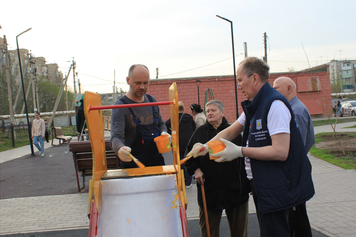 Спикер Гордумы Астрахани Игорь Седов помог навести порядок в сквере у школы №9 в рамках проекта «Школа ЖКХ»