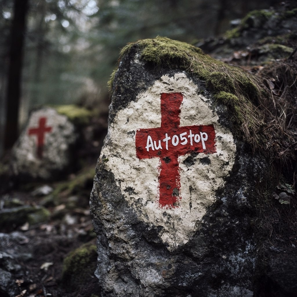 Создано на основе запроса: À logo company in the style of a car pooling company. There’s A rock with two red and white signs on it, one has the number/name "Aut05top" painted in front of another cross drawn on an old, mossy stone wall in the woods and the other main symbol is a Trèfle. --- Автоперевод: Компания логотипа в стиле автомобильной компании. Круто выглядит? 🤔 https://dzen.ru/id/65c0c65c86e4f837c27b24d7 #ИИ #AI #нейросеть #midjourney #art