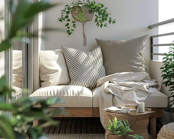 Маленький балкон — не кладовка. Не чулан с коробками, лыжами и сломанным вентилятором. Это шанс. Пространство, которое можно превратить в настоящий островок уюта — где утром пьёте кофе, днём читаете книгу, а вечером прячетесь от мира с пледом и лампочками. Как? Сейчас расскажем. Первый шаг — освободить. Всё лишнее — в утиль, на переработку или в ящики (но не на балкон!). Оставьте только то, что реально будет использоваться. Пространство — ваш главный актив, не захламляйте его. Вам не нужен диван. Вам нужны: Идеально, если мебель легко убирается или трансформируется. Подстраивайтесь под настроение и время суток. Подушки, плед, коврик — даже на открытом балконе текстиль делает магию. Главное — выбирать плотные, устойчивые к влаге ткани или быстро убирающиеся варианты. Фактура здесь работает на атмосферу: лен, вязаный хлопок, мех — всё к месту. Даже на самом маленьком балконе можно устроить мини-оранжерею: Растения придают балкону жизнь. Аромат лаванды, мята в горшке, цветущая герань — и