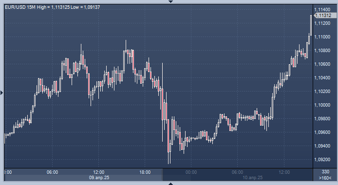Данные по инфляции ускорили снижение График евро/доллара интервалами в 15 минут В четверг доллар показал снижение, особенно по отношению к валютам, которые считаются надёжными убежищами, а также к валютам, более чувствительным к риску. Трейдеры пытались оценить ситуацию после неожиданного объявления о введении пошлин в среду. Президент США Дональд Трамп вызвал шок на рынках, предоставив 90-дневную отсрочку по своим ответным пошлинам в честь «Дня освобождения». Эти пошлины должны были вступить в силу менее чем через 24 часа, но базовая ставка тарифа для большинства стран осталась на уровне 10%. Однако Трамп повысил ставку тарифа до 125% для китайского импорта, который должен был вступить в силу немедленно. Это произошло после того, как Пекин ответил на предыдущие пошлины США, повысив ставку тарифа до 84%. Заявление Трампа вызвало резкие колебания цен на активы, включая государственные облигации и сырьевые товары. Валюты не стали исключением. В среду швейцарский франк и японская иена, ко