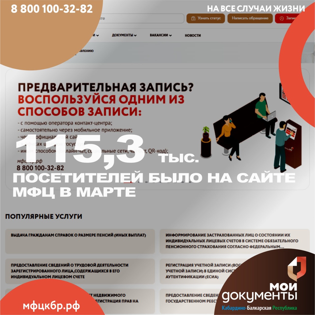В марте сайт мфцкбр.рф посетило 115,3 тысячи человек, ими было просмотрено 161,2 тысячи страниц
