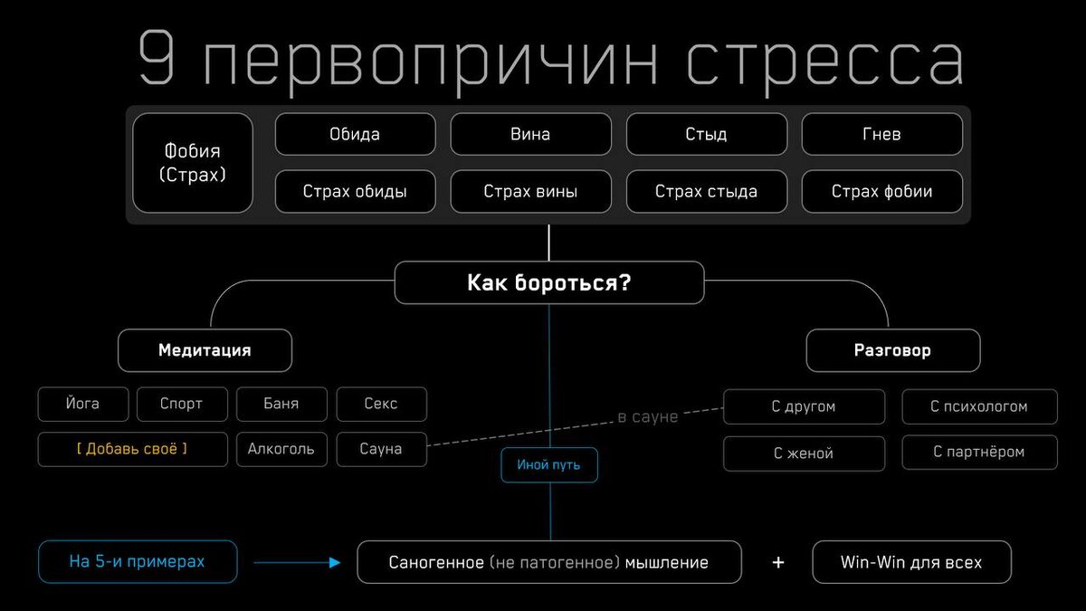 Схема для Завтрака в субботу на 41-м, и на основной конференции в пятницу обсуждаем также стресс и спокойствие — от кардиохирурга, в разрезе