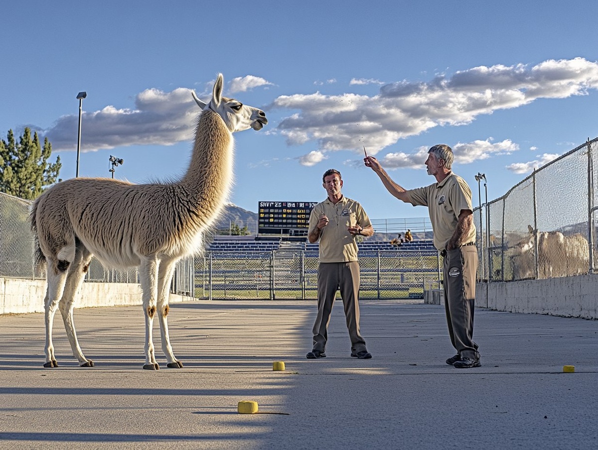 Создано на основе запроса: a photograph of a llama spitting contest