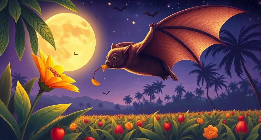 Как это работает? Нектароядные летучие мыши, вроде длинноязычных видов, прилетают к цветам ночью, когда дневные опылители (пчёлы и бабочки) спят. У них длинные языки — иногда до 9 см, как у летучей мыши-нектарницы Дарвина, — чтобы доставать нектар из глубоких цветков. При этом пыльца прилипает к их мордочкам и переносится на другие растения. Без них многие тропические экосистемы просто не смогли бы размножаться.