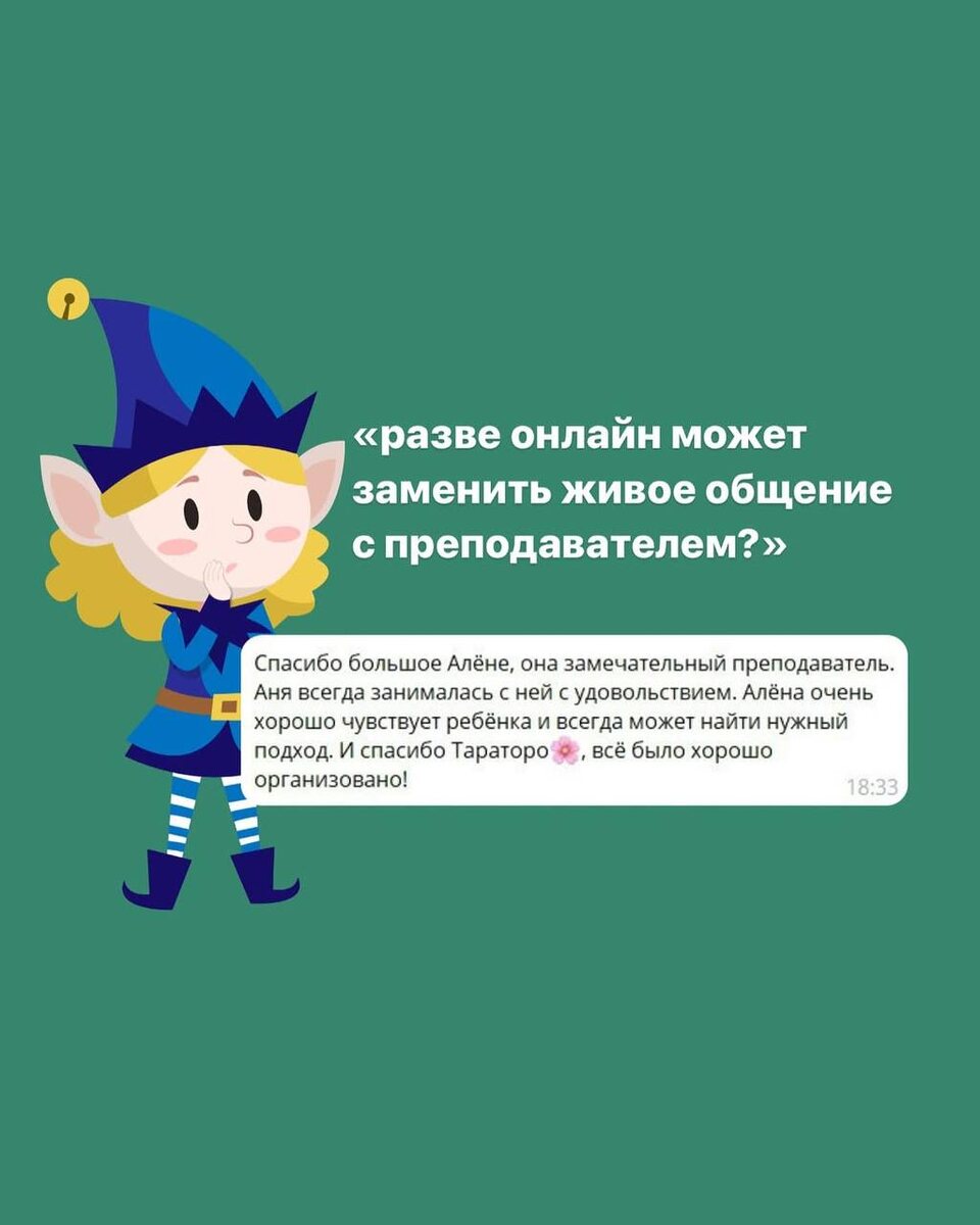 Если вы всё ещё сомневаетесь в занятиях с логопедом онлайн, не переживайте! Отзывы наших клиентов развеивают основные сомнения относительно формата онлайн-занятий. Записывайтесь на бесплатную диагностику в Тараторо и наши специалисты ответят на все вопросы, связанные с развитием речи!
