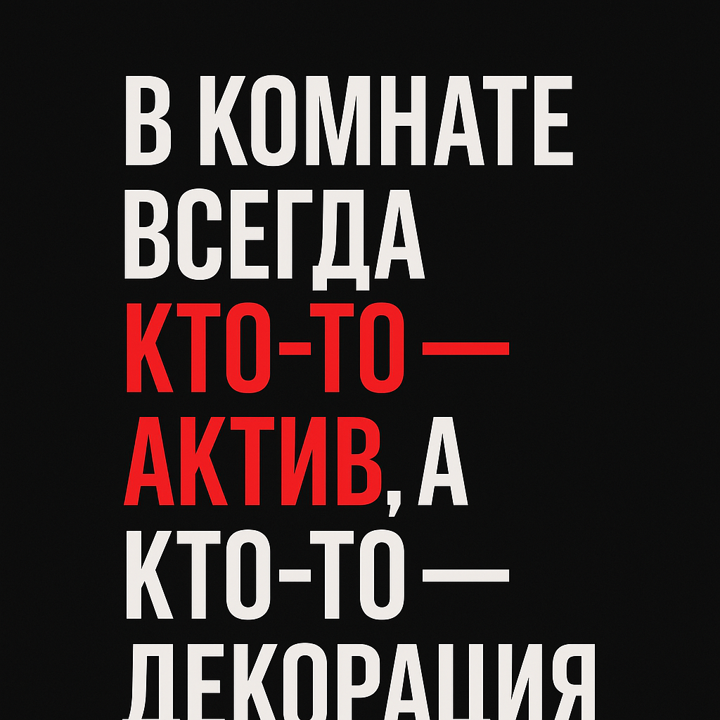 “Если ты входишь — входи с позицией.” Один дядя, у которого 9 коммерческих объектов, 2 жены в прошлом и один адвокат на окладе, однажды сказал мне: 🔸 “Запомни, когда входишь в комнату — ты уже либо рыба, либо сеть.”