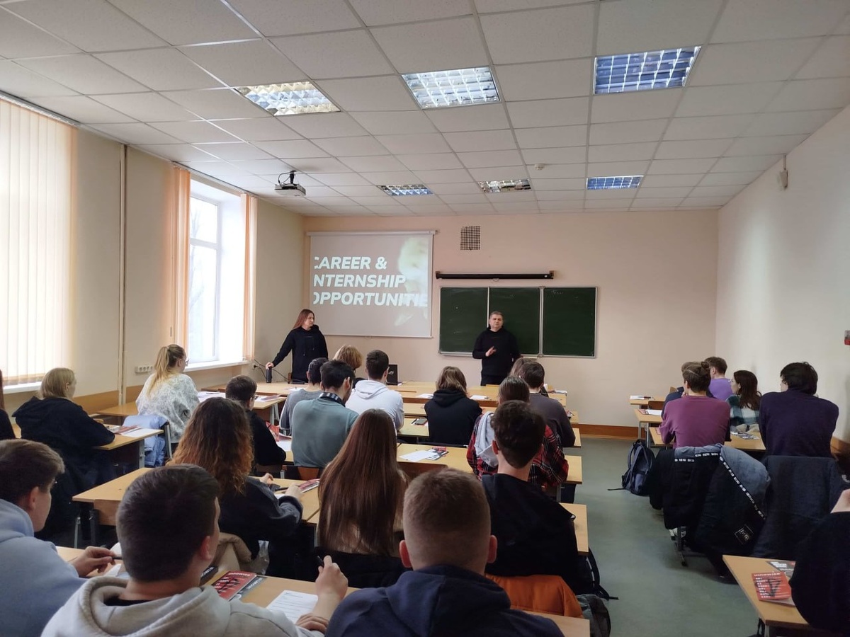На факультете математики и технологий программирования прошёл семинар «Как попасть в ИТ» 🖥 Семинар провели представители IT-компании «Фабрика инноваций и решений» – HR-manager компании Виталий Ковальчук, рекрутёр IT-хаба Юлия Терешкова. ⌨️ Виталий Ковальчук и Юлия Терешкова рассказали ребятам 2 курса о работе в компании «Фабрика инноваций и решений», об основных направлениях деятельности компании, о возможностях стажировки студентов IT-специальностей в компании. ✅ Студенты принимали активное участие в семинаре. В конце мероприятия сотрудники компании проконсультировали желающих по поводу стажировки в компании.