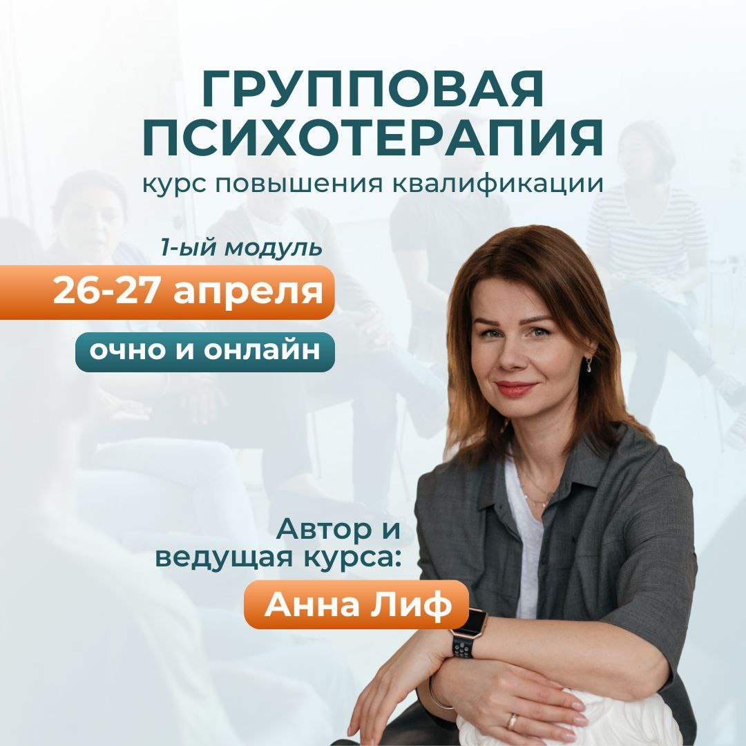 Курс «Групповая психотерапия» состоит из трех модулей, каждый по 2 дня. Начало первого модуля 26 апреля. Всего в курсе 80 часов теории и практики.