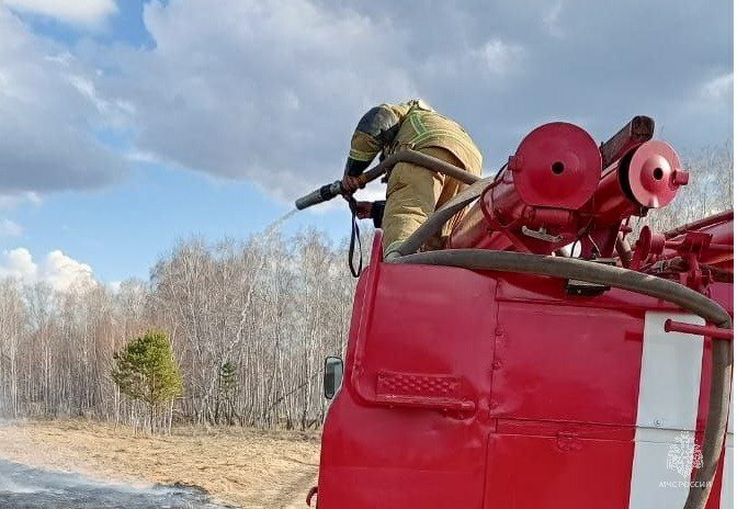 🚨Пожарно-спасательные подразделения краевого центра ликвидировали горение травы в районе поселка Затон