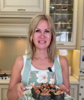 Рис ничем не поливаю, просто формирую из него руками овальные котлетки, а затем оборачиваю их в лист нори. Край листа смачиваю водой, чтобы он прилип и не разворачивался.