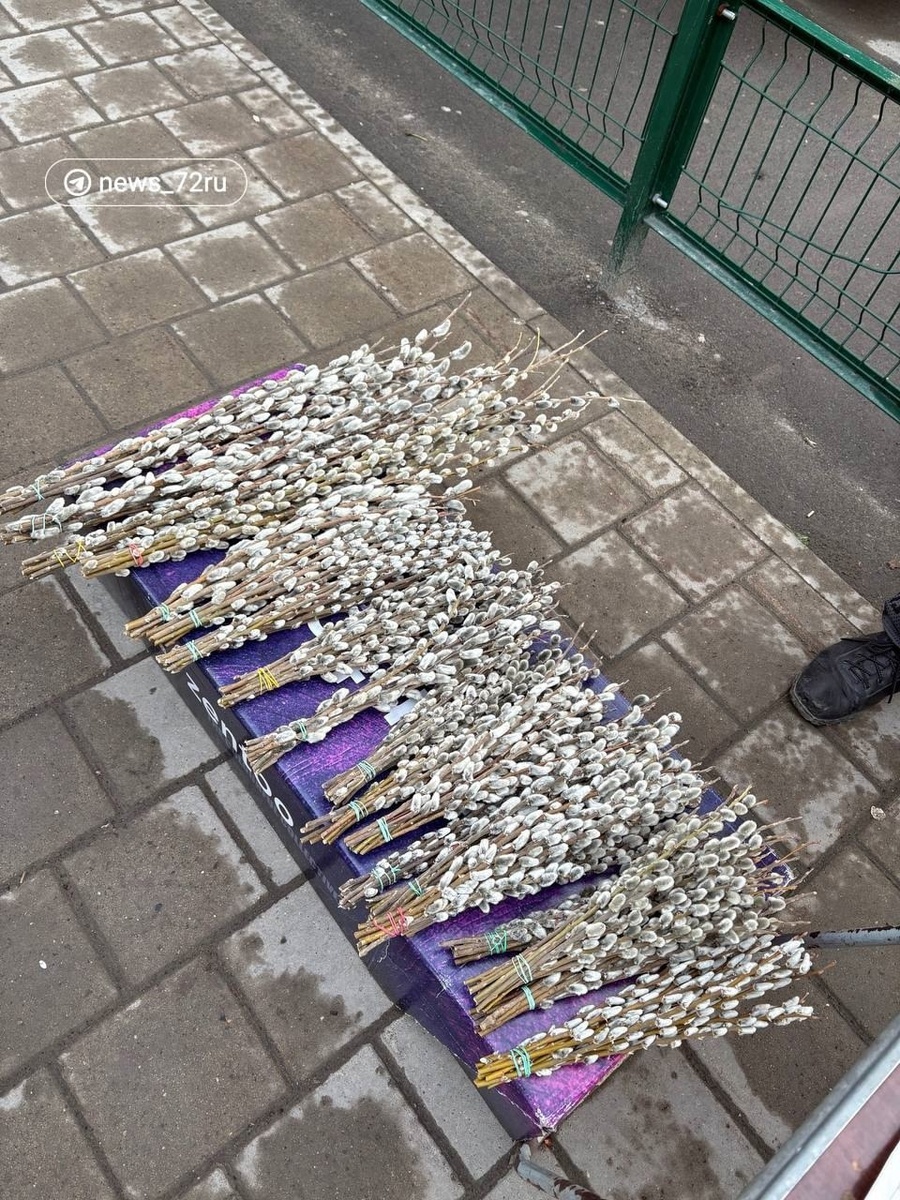 В Тюмени начали продавать вербы! Букет из веточек обойдется в 100 рублей.