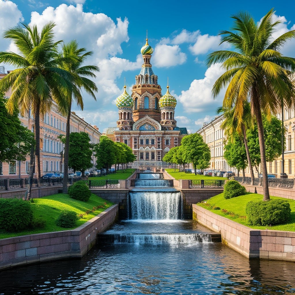 Что было бы, если бы Санкт-Петербург находился в тропиках? Представьте себе картину: величественная архитектура Северной столицы, но вместо типичных питерских туманов и моросящего дождя – яркое солнце и пальмы. Как бы изменился город, если бы вместо сурового северного климата здесь царила тропическая жара? Набережная Невы превратилась бы в настоящий пляж в стиле Майами. Вместо традиционных прогулок под зонтиком петербуржцы могли бы наслаждаться загаром на фоне исторических зданий. Широкие водные пространства города создали бы идеальные условия для развития сёрфинга – представьте себе, как спортсмены рассекают волны на фоне Петропавловской крепости! Улицы и дворы города заросли бы тропической растительностью. Вместо привычных тополей и клёнов здесь можно было бы увидеть мандариновые деревья, превращающие питерские дворы-колодцы в уголки итальянской Ривьеры. Исторические здания, увитые тропическими растениями, приобрели бы экзотический колорит, а пальмы гармонично вписались бы в архит