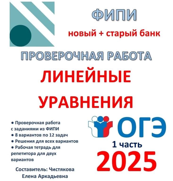 ⌚ На 25-28 учебных неделях ученики 6 класса изучают §5. п.37-40 "Решение уравнений" (12 ч) Уроки 125-136 И уже сейчас ученики 6 класса могут решить задания из ОГЭ по этой теме: 🆗 ОГЭ (1 часть) Краткие опорные конспекты + Проверочная работа "Линейные уравнения" 📥 Скачать на WB: digital.wildberries.ru/offer/135819 🔹Полная сверка с ФИПИ февраль 2025 (кто брал, скачайте бесплатно) 🔹По сравнению с 2024 годом ничего не изменилось. 🔹Проверочная работа в 10 вариантах по 9 заданий в каждом варианте. 🔹Сборник состоит из трех файлов: - для учителя Краткие опорные конспекты + Проверочная работа (4 страницы) - рабочая тетрадь для репетитора Краткие опорные конспекты + Проверочная работа (8 страниц) - полное решение, ответы, критерии оценивания (6 страниц) 🔹Эти задания может выполнить ученик 6 класса после изучения темы "Решение уравнений". 📚 Все мои материалы в таблице: vk.cc/cHlmAx