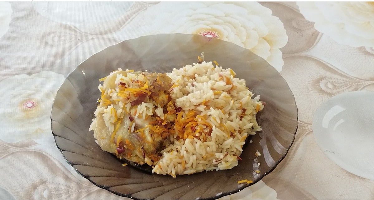 Ингредиенты: 1.Куриное мясо промыть, нарезать порционными кусочками и сложить в рукав. 2.В рукав для запекания положить промытый рис, измельчённый лук и мелко порезанную или тёртую морковь 3.Добавить любимые специи, перемешать содержимое рукава. Влить 600 мл кипячёной воды и плотно закрыть края пакета. Сделать небольшие надрезы сверху, чтобы пакет не раздувался. Выложить рукав на противень. Запекать в духовке 40 минут при температуре 200 градусов. Вот и получился вкусный ужин. Рис получился вкусный, рассыпчатый. Всем приятного аппетита. Жду от вас рецептов.