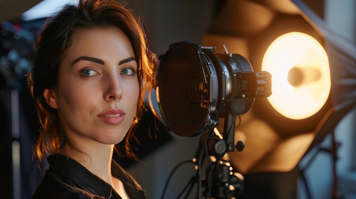 Создано на основе запроса: hyper-realistic photo of a technician fixing a studio filming light