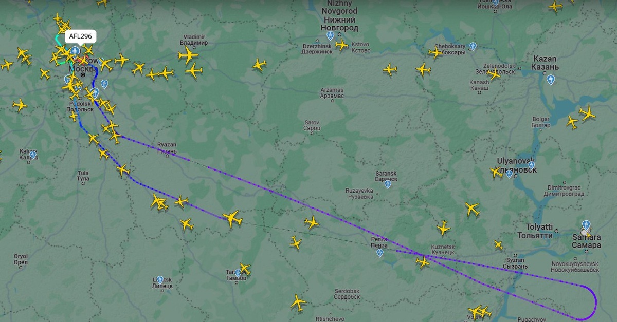 В настоящий момент борт Airbus A350 кружит над Москвой, следует из данных FlightRadar24.