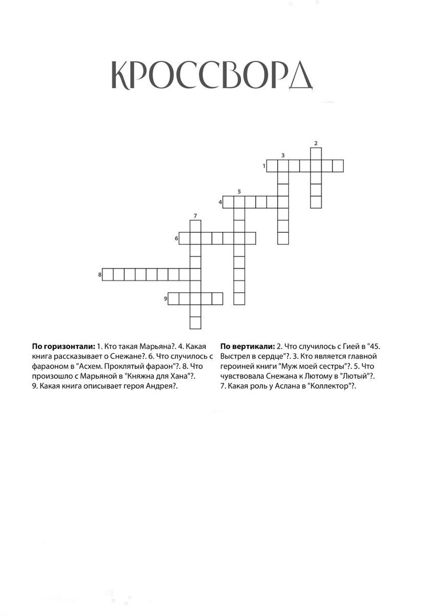 Ну что, посмотрим, как хорошо вы знаете наши книги? 🤔 Отгадаете кроссворд? 🧩 Среди отгадавших я выберу 1 победителя — подарок, промокод 🎁. Отгадывайте, присылайте ответы мне в личку 📩, а здесь оставляйте плюсики ➕. Ну что, попробуем? 😉