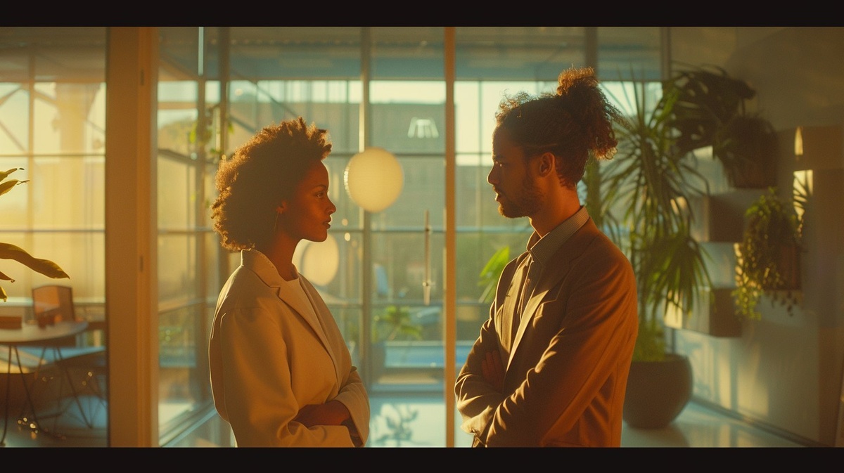 Создано на основе запроса: Photo-realistic image of two diverse young professionals in a minimalist, Scandinavian-inspired glass office