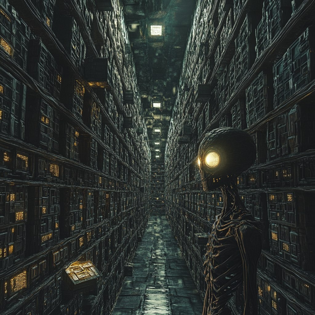 Создано на основе запроса: extremely detailed and realistic, hall of multiple cubes, colossal collection of dark cubes, portrait of an elegant alien creature, surrealistic collector of the cubes, multiple dark cubes on the multiple shelves, dark gamma, shining eyes, psychodelic skin, extremely skinny creatury looking at the small dark cubes on the multiple shelves, beautiful museum of dark cubes --- Автоперевод: Чрезвычайно подробный и реалистичный, Зал нескольких кубиков, колоссальная коллекция темных кубиков, портрет элегантного инопланетного существа, сюрреалистичный коллекционер кубиков, несколько темных кубиков на нескольких полках, темные гамма, сияющие глаза, психодель, чрезвычайно тощий творческий Как тебе эта иллюстрация? 🤔 https://dzen.ru/id/65c0c65c86e4f837c27b24d7 #ИИ #AI #нейросеть #midjourney #art