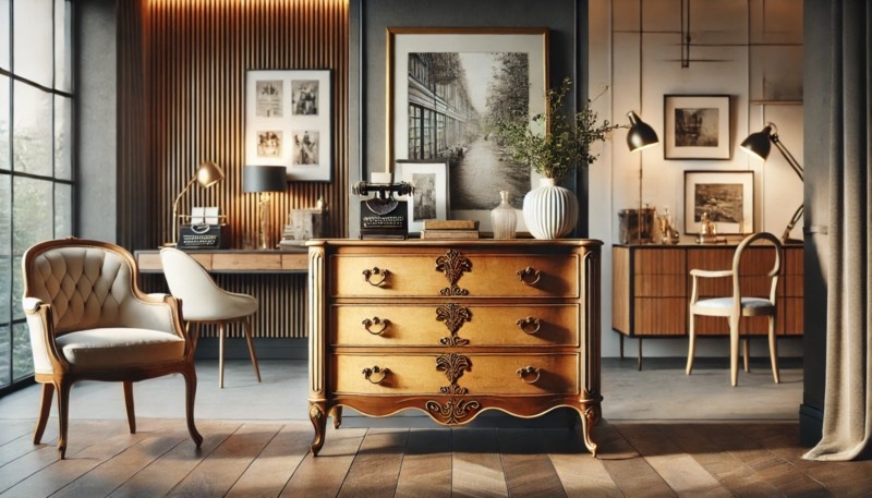 Интересный момент: винтажный комод может гармонировать не только с классической обстановкой, но и с современным стилем. Например, в интерьере лофт грубоватая фактура дерева и резные детали создают эффектный контраст со стенами из бетона и металлом мебели. В скандинавском дизайне светлый винтажный комод служит ярким акцентом на фоне преобладающей белизны, добавляя тепла и индивидуальности. Сочетание разных стилей — одна из причин, почему винтаж не теряет популярности.