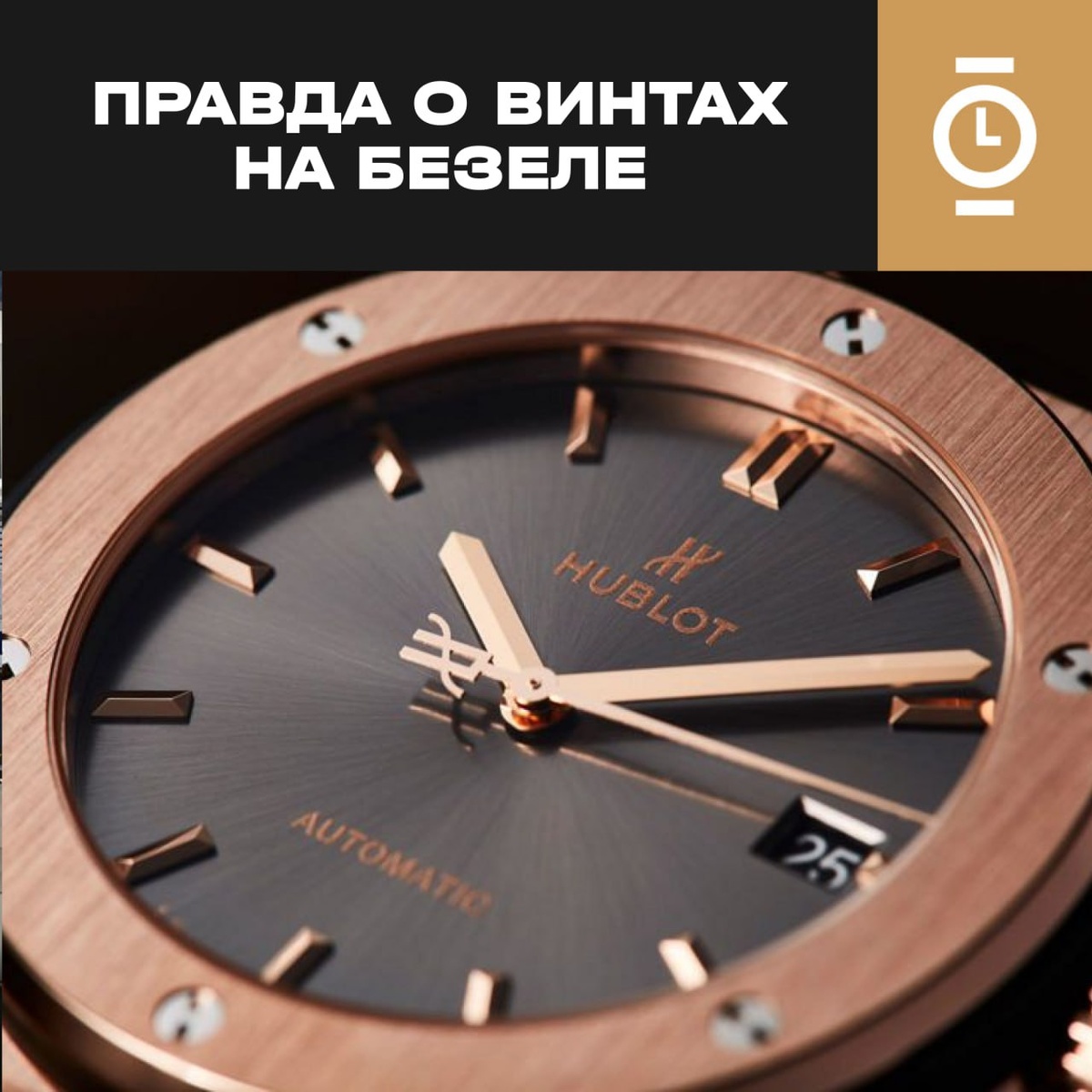ПРАВДА О ВИНТАХ НА БЕЗЕЛЕ #факты_WD После правильного цвета окна даты одна из самых обсуждаемых тем в мире часов — это винты на безеле. Комментарии вроде «Жаль, что винты не выровнены — я бы не купил такие часы» появляются почти под каждым фото часов с открытыми винтами, особенно моделей Hublot или Bell & Ross. Но всё ли так однозначно? Лицевая сторона: идеально, но не совсем винты Самый частый пример — Royal Oak от Audemars Piguet. Именно его вспоминают те, кто критикует другие бренды за «криво стоящие винты». Только вот винты на безеле Royal Oak — не винты. Это резьбовые гайки, которые вставляются в шестигранные отверстия безеля и фиксируются винтами с обратной стороны корпуса. И вот там уже никакого идеального выравнивания нет. Обратная сторона: настоящая механика В отличие от AP, у Hublot и Bell & Ross используются обычные, хоть и качественные винты. Их задача — фиксировать безель. Эстетика — вторична. А что хуже: слегка неровно стоящий винт или ослабленный элемент, который мож