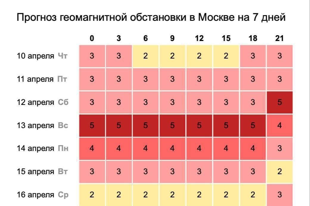 Уже сегодня вечером Россию ожидает сильная магнитная буря, пик которой придётся на воскресенье. Геомагнитные колебания будут продолжаться до среды. Люди, чувствительные к изменениям погоды, могут почувствовать усталость, апатию, головные боли и повышенную сонливость. В это время важно заботиться о своём здоровье: больше отдыхать, избегать стрессов и следить за своим самочувствием.