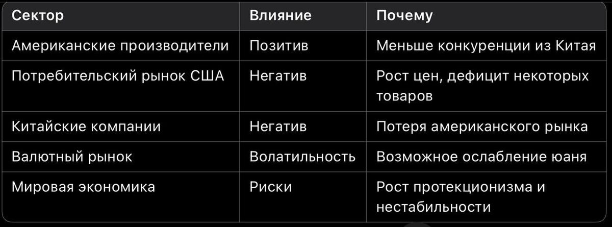 Сейчас будет неожиданно) ⚡️Трамп повысил пошлины на товары из КНР до 145% — CNBC Сейчас как аналитик объясню суть и последствия: Что произошло: Трамп (скорее всего в рамках своей предвыборной риторики или планов) озвучил повышение импортных пошлин на китайские товары — до 145%. Это в несколько раз больше текущих тарифов. Что это значит: 1. Антикитайская стратегия — Это продолжение политики торговой войны США и Китая. — Такой тариф фактически закрывает рынок США для определённых китайских товаров, делая их нерентабельными для импорта. 2. Внутренняя экономика США — Повышение пошлин = рост цен на китайские товары внутри США. — Производители внутри США получают преимущество, но потребители страдают от роста цен. 3. Давление на Китай — Китай вынужден искать другие рынки сбыта. — Это удар по китайской промышленности, особенно в сегментах, где США были крупнейшим покупателем. 4. Последствия для мира — Рост глобальной инфляции. — Разрыв цепочек поставок. — Стимуляция локализации п
