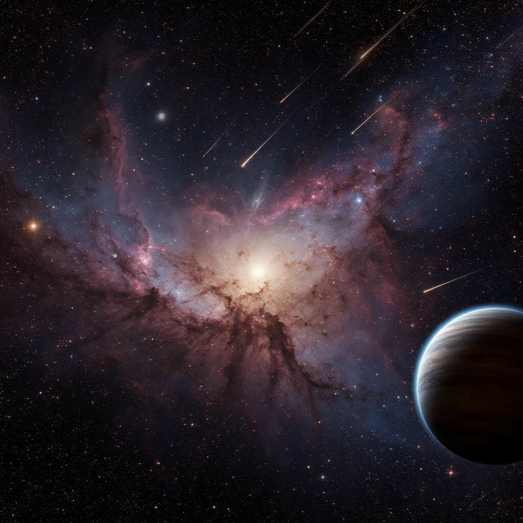 Арес словно оказался в открытом космосе. Вокруг него летали метеориты, простирались разные туманности, вращались планеты... Казалось, что это не помещение в исследовательском центре Кебеи, а действительно открытый космос... Кроме них с Асмун здесь находились четверо горийских мужчин. Они стояли возле парящих в воздухе сфер, держа в руках какие-то приборы с мерцающими экранами.