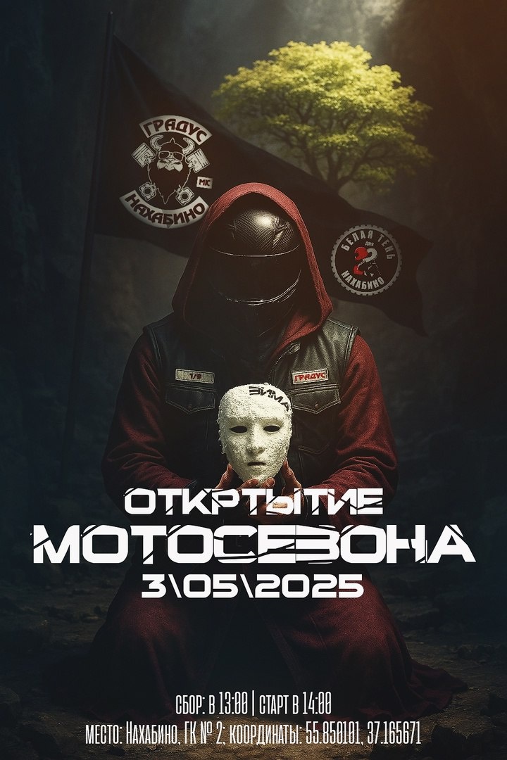 🔁 Дальняк.рф™: 🔥 ОТКРЫТИЕ МОТОСЕЗОНА 2025 🔥 📅 3 мая (суббота) 📍 Нахабино, ГК № 2 🕐 Сбор — в 13:00 | Выезд — в 14:00 📌 Координаты: 55.850101, 37.165671 Ну что, родные. Дождались. Железо снова оживает, шлемы снова в боевом, а воздух пахнет свободой и бензином. Это оно. То самое чувство, когда просыпается движ. 🏍 Открываем мотосезон вместе: Градус МК Нахабино и Белая тень ДМК Нахабино и зовём всех, кто на байке, кто рядом, кто в теме, кто соскучился по колонне, по дороге, по своим. Здесь нет чужих. Здесь свои. Огонь в глазах, километры под ногами и весна, которую мы открываем вместе. Приходи, если ты с нами - по духу, по пути или по жизни. Мы не делим людей на "байкеров" и "наблюдателей". Мы делим на своих и тех, кто ещё не доехал. 📷 Афиша уже разошлась по рукам. И ты - один из тех, кто определённо должен быть тут. ✊ Готовь байк. И душу. До встречи на старте.