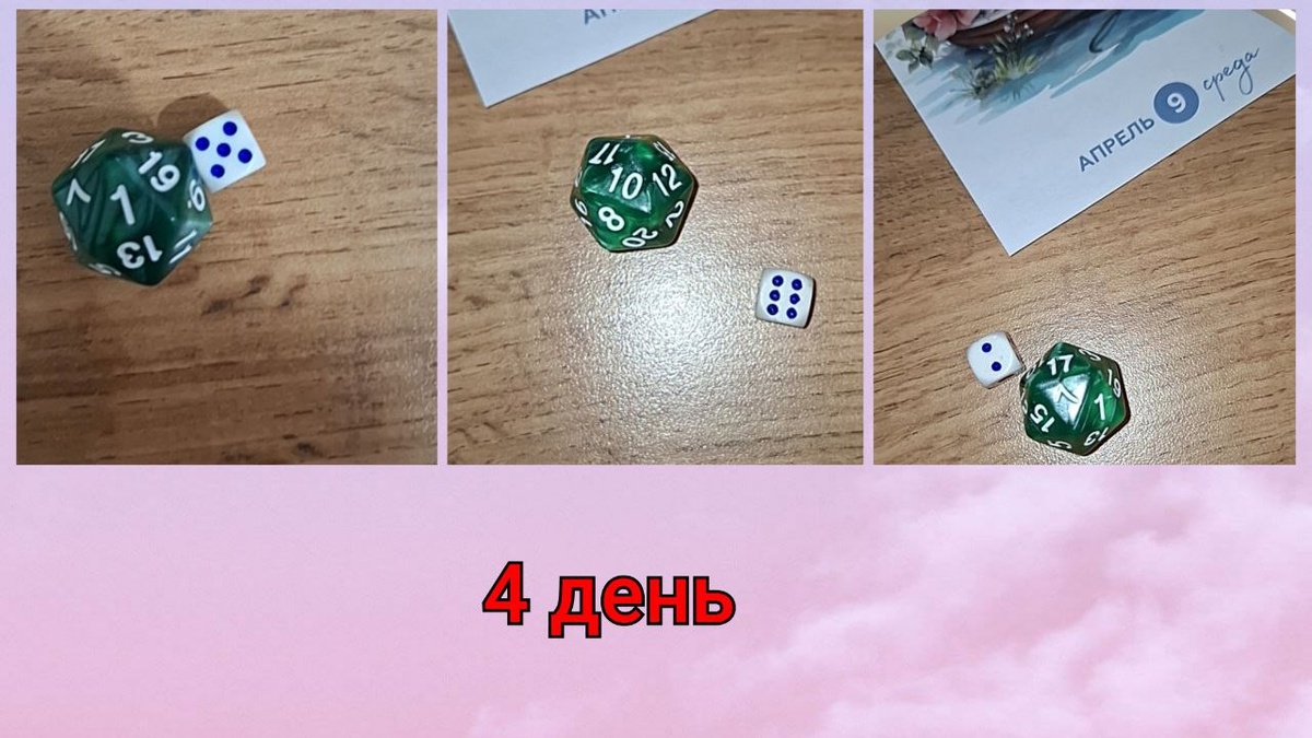 Добрый день. Кубики брошены и я приступаю к работе . На 09.04.2025 выпали следующие процессы: 2 процесс - чулки "Лесная нимфа"– вяжем 7 рядов; 5 процесс - кардиган "Красный мак" - вяжем 1 ряда; 6 процесс - топ "Зеркальный" - вяжем 10 рядов. Мои продвижения за 4 день. 5 процесс - кардиган "Красный мак" - было отвязано 20 рядов; 6 процесс - топ "Зеркальный" было связано 12 рядов. Ко 2 процессу так не приступала. На этом у меня все, увидимся завтра. Список участников игры "Я всё за тебя решу_6 " 1. Вязание на перемене " https://rutube.ru/channel/47680143