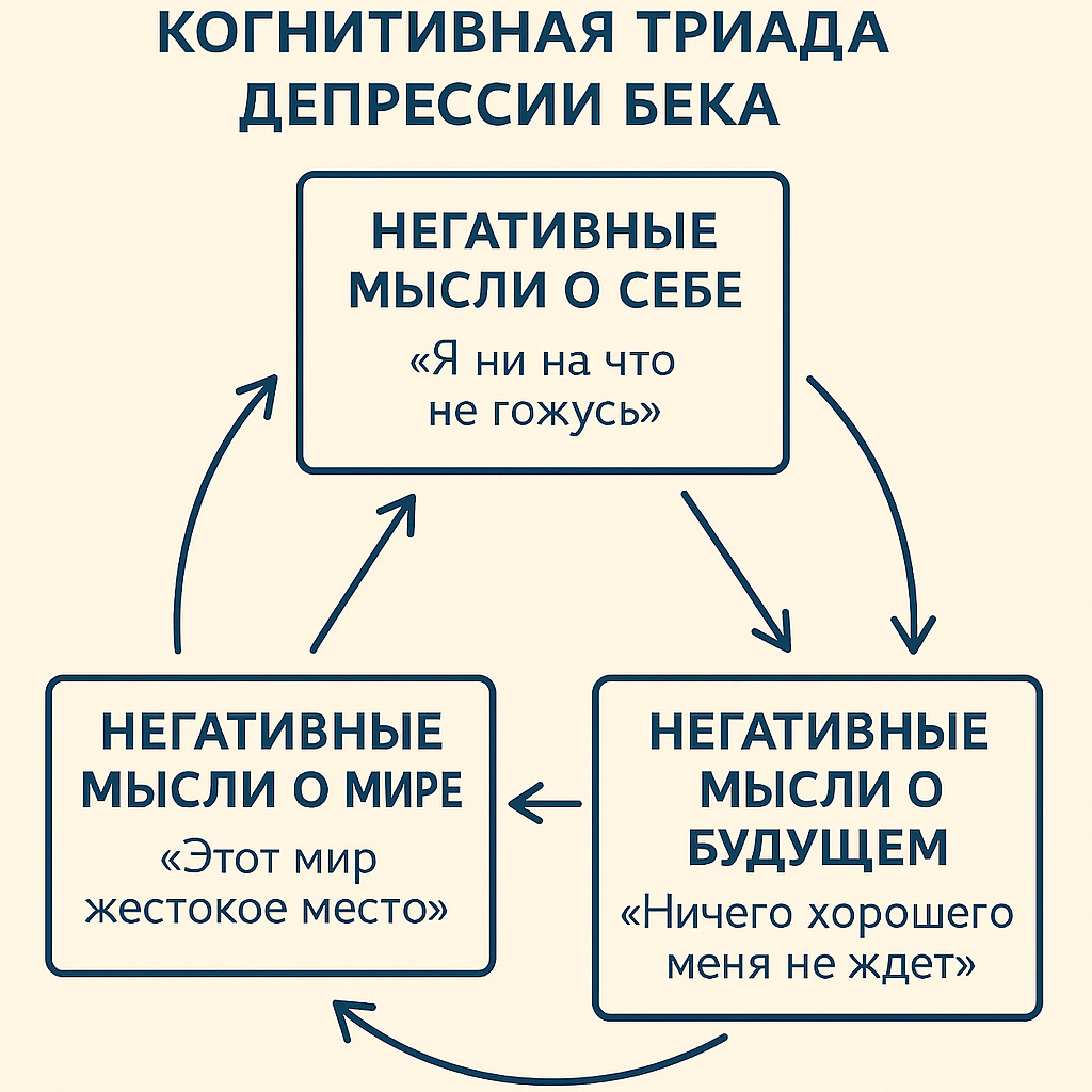 Первое и самое очевидное применение — объяснение сложных понятий через визуализацию. Не секрет, что многие клиенты лучше усваивают материал, если он представлен наглядно. Теперь вы можете прямо в диалоге создать схему, инфографику или график. Например, объясняя клиенту когнитивную модель депрессии, используйте промт: «Создай подробную и понятную схему когнитивной триады депрессии Аарона Бека, включающую негативные мысли о себе, мире и будущем, с примерами таких мыслей». Поверьте, это намного проще, чем пытаться описывать сложные взаимосвязи на словах.