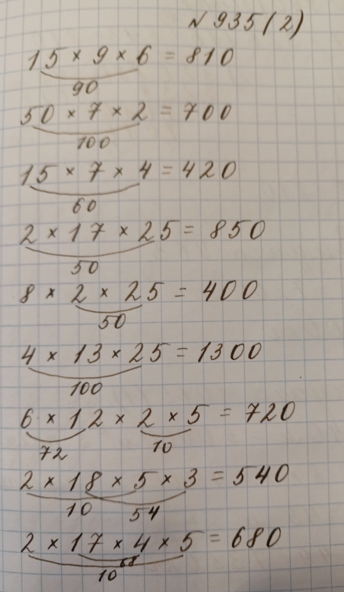 Вспомним переместительный закон умножения и выполним задание 935(2).