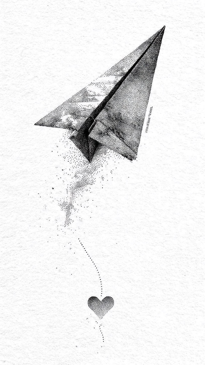 Создано на основе запроса: Minimalist small tattoo design of a paper spaceships in flight with a delicate dotted line trailing behind