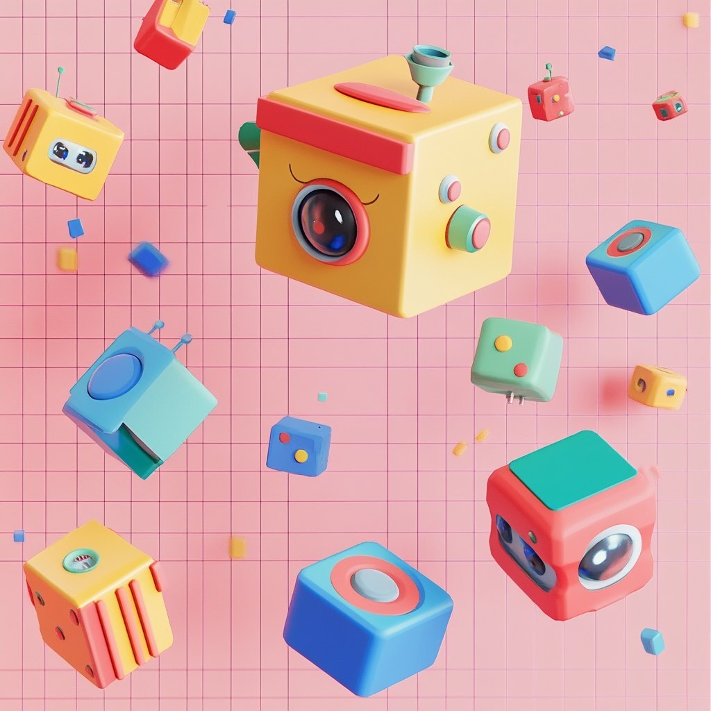 Создано на основе запроса: Isometric colorful 3D blocks floating in space on a pastel grid background. Each block is made of bold, geometric shapes in vibrant colors like red, yellow, blue, and green. One block has a cute robot face with a playful expression. Style is whimsical and cartoon-like with a hand-drawn, textured look. --- Автоперевод: Изометрические красочные 3D -блоки, плавающие в космосе на пастельной сетке. Необычно вышло? 🤔 https://dzen.ru/id/65c0c65c86e4f837c27b24d7 #ИИ #AI #нейросеть #midjourney #art