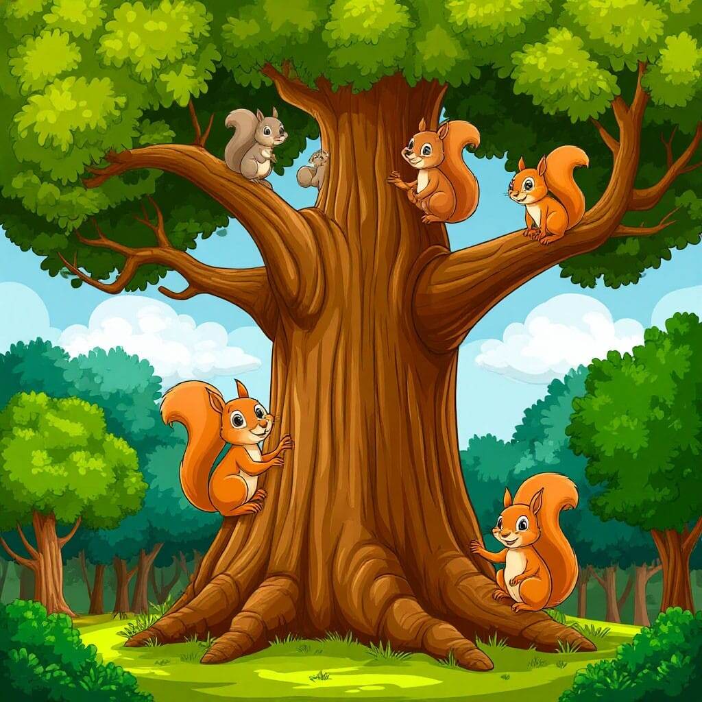 В одном большом лесу, стоял старый дуб. На этом дубе всегда любили резвиться белочки, сидеть дятлы и другие птички. В тот день этот дуб был осленнл прекрасен, был ещё тёплый, но уже осенний день. Его листья переливались от ярко зелёного в темно бордовые цвета. Желудей было настолько много, что кабаны под этим дубом решили устроить свою хижину. Листва готовилась опасть, ввиду приближающейся зимы. На одной ветке сидело несколько птичек, им нравилось наблюдать за тёплым весенним днем и наслаждаться последними тёплыми лучиками солнца. Птички пели на разные лады и обсуждали предстоящий перед в тёплые страны. Им нужно было набраться сил, спланировать маршрут и выбрать вожака, который поведёт за собой стаю. Взрослые птички уже собирали большой и очень вкусный стол перед перелётом. На столе лежали семечки, немного пшена, засушенные ягоды, червячки и любимые печенья на десерт. Из напитков птички набрали немного речной водички в крышечки от желудей. — Костя, подготовь, пожалуйста, ещё дождевой