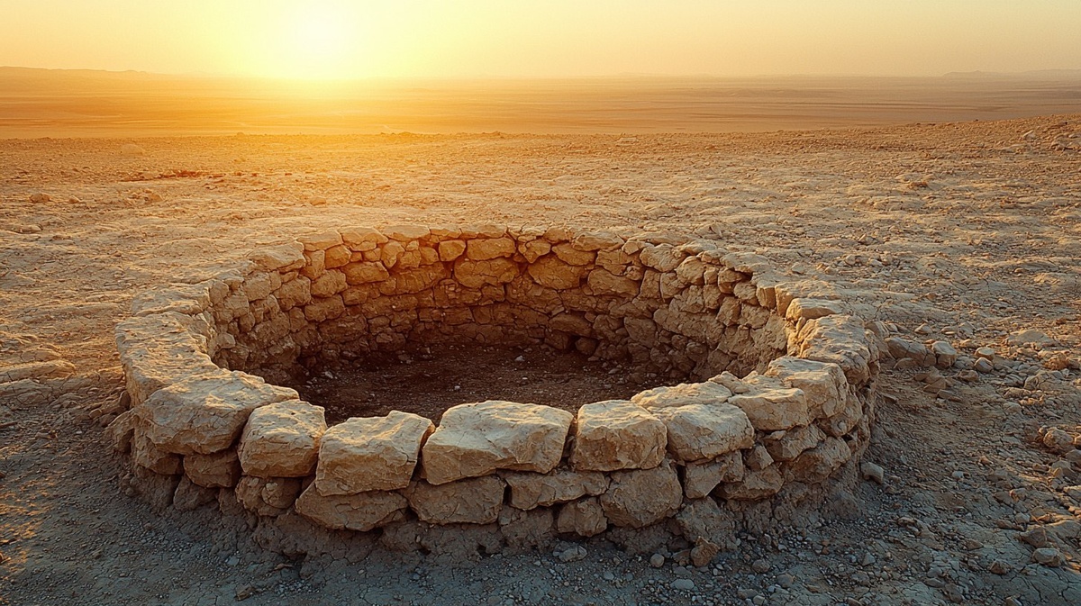 Создано на основе запроса: High-definition Photo ,the sun casting shadow over an ancient Berber dry well in the Sahara desert,medium