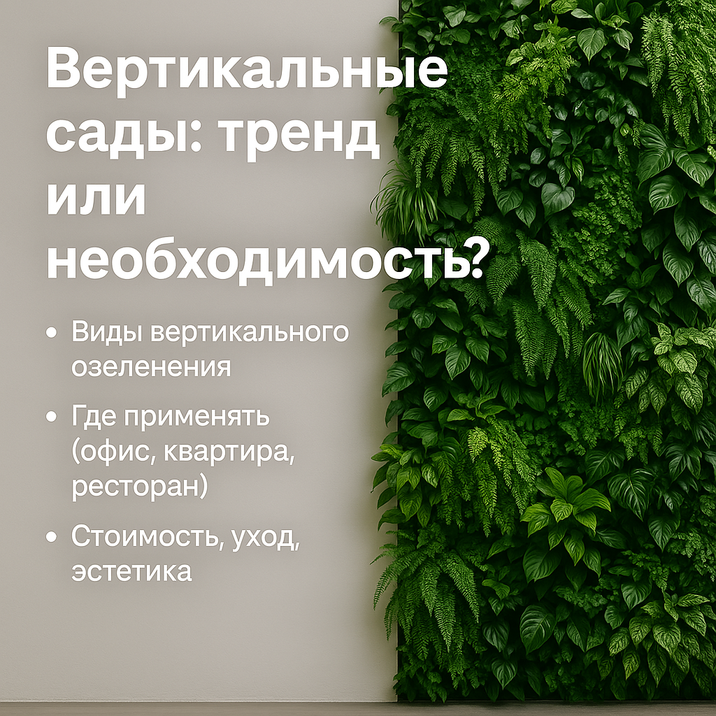 Ещё 5 лет назад вертикальное озеленение казалось чем-то дорогим и странным — вроде красиво, но зачем? Сегодня это один из самых ярких трендов в дизайне интерьеров. А главное — он даёт не только эстетику, но и реальную пользу. Разбираемся, зачем вообще нужны вертикальные сады, куда их можно ставить, сколько они стоят и кому точно стоит обратить внимание. Цены сильно зависят от типа, площади и системы. Примерно по рынку (на 2025 год): Но! Даже небольшая зелёная вставка 1.5×1.5 м даёт нужный эффект — мы это проверяли на практике десятки раз. Если коротко — и то, и другое.