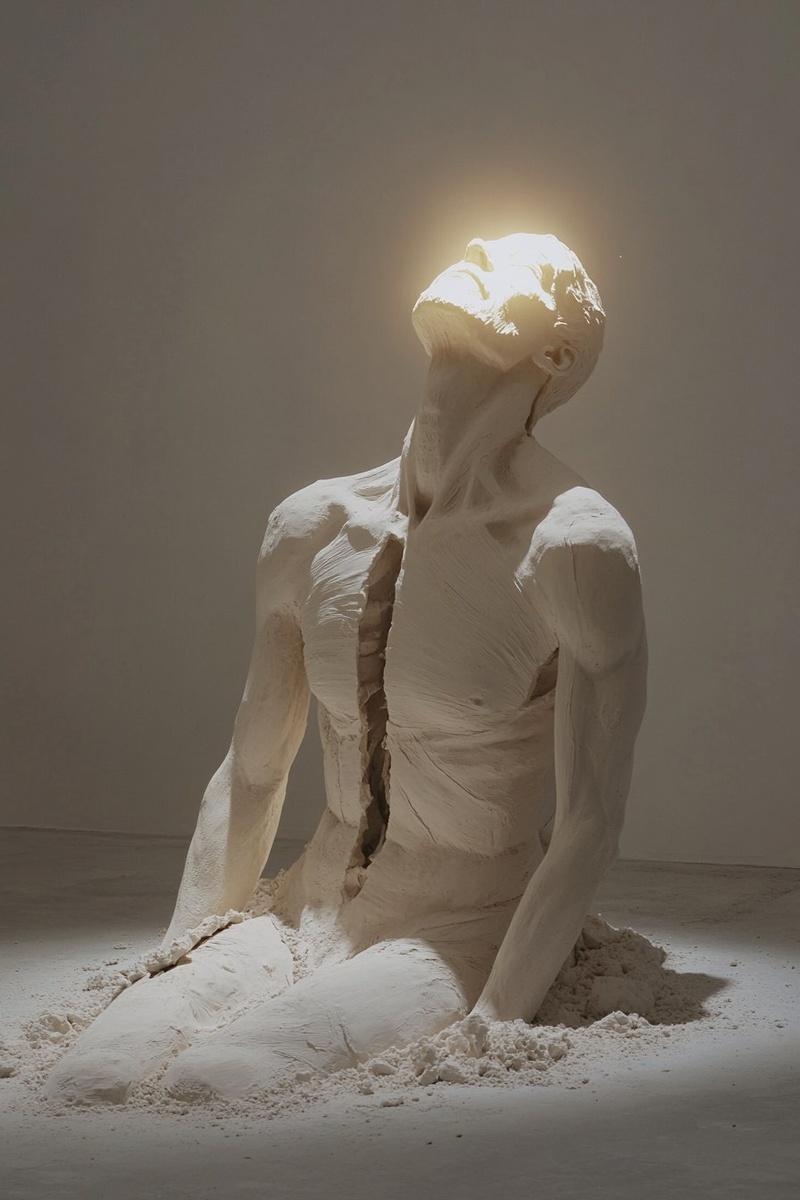 Создано на основе запроса: a white clay sculpture staying on the ground like statue of Jesus in Rio , detailed an uncolored human figure