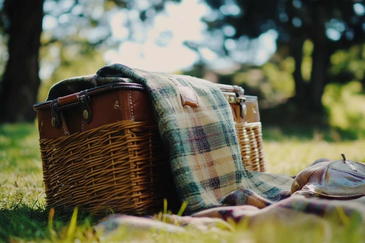 Создано на основе запроса: picnic basket at park close up