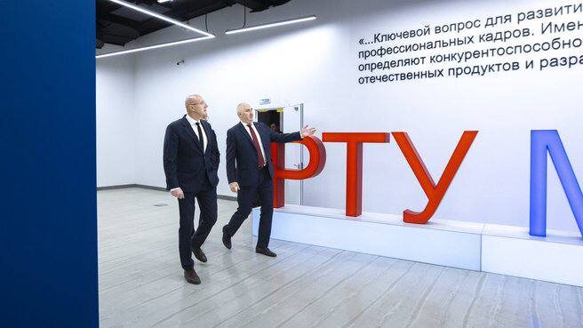 Технопроцессы для техносуверенитета ❗️Вице-премьер Дмитрий Чернышенко посетил МИРЭА – Российский технологический университет (РТУ МИРЭА). В фокусе внимания были ключевые образовательные и научные проекты вуза, а также работа лабораторий. ➡️Зампредседателя Правительства сопровождали замглавы Минобрнауки Андрей Омельчук и ректор РТУ МИРЭА Станислав Кудж. ➡️Дмитрий Чернышенко подчеркнул – вузы являются важными драйверами на пути к технологическому лидерству. РТУ МИРЭА на этом пути системно использует меры господдержки. Вуз участвует в программе «Приоритет-2030», на его базе функционирует Передовая инженерная школа. Сотрудничество с индустриальными партнерами идет по конкретным разработкам на базе технологических лабораторий университета. ➡️На базе вуза функционирует Ведомственный ситуационный центр по мониторингу сферы образования и науки Минобрнауки России. Ректор Станислав Кудж подчеркнул: Мы стремимся сделать наш университет драйвером технологического суверенитета: от лабораторий