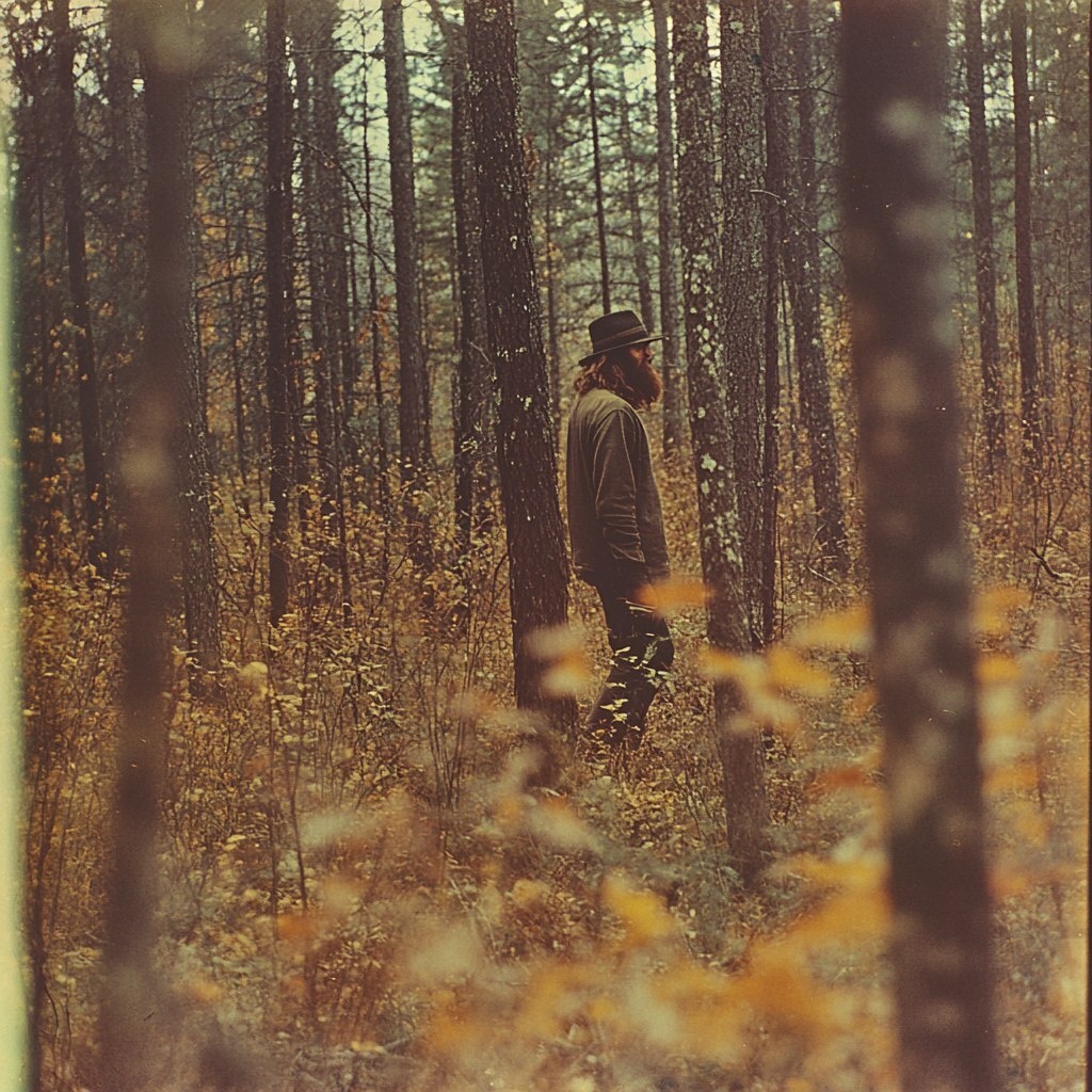 Создано на основе запроса: A grainy, blurry, very old color photograph of a man with long hair and beard walking in the woods through dense tall trees. The forest is thick with tall spruce fir and aspen trees, some of which have autumn leaves on them. The man is wearing a trucker hat and dark sungalsses, walking across the photo from left to right. The man in the photo is far away in the distance, with out of focus sticks and leaves partially obstructing the view. There's a sense of mystery about it. the photographer is hiding from the man --- Автоперевод: Зернистая, размытая, очень старая цветная фотография мужчины с длинными волосами и бородой, идущей по лесу через плотные высокие деревья. Хорошо выглядит? 🤔 https://dzen.ru/id/65c0c65c86e4f837c27b24d7 #ИИ #AI #нейросеть #midjourney #art