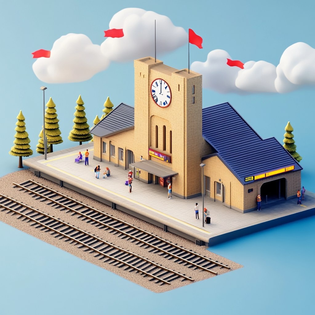 Создано на основе запроса: a train station in simple 3d style isometric
