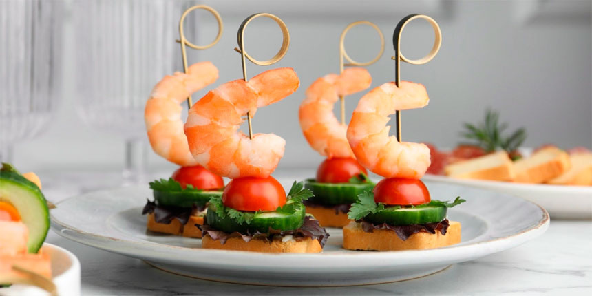 Рецепт: Канапе с креветками, помидорами и огурцом