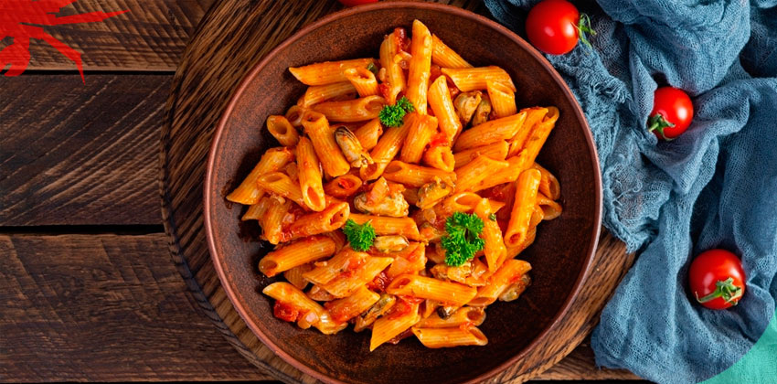 соус, отвариваем макароны. Откидываем на дуршлаг. Выкладываем мидии в сковороду с соусом, а через минуту-две добавляем
