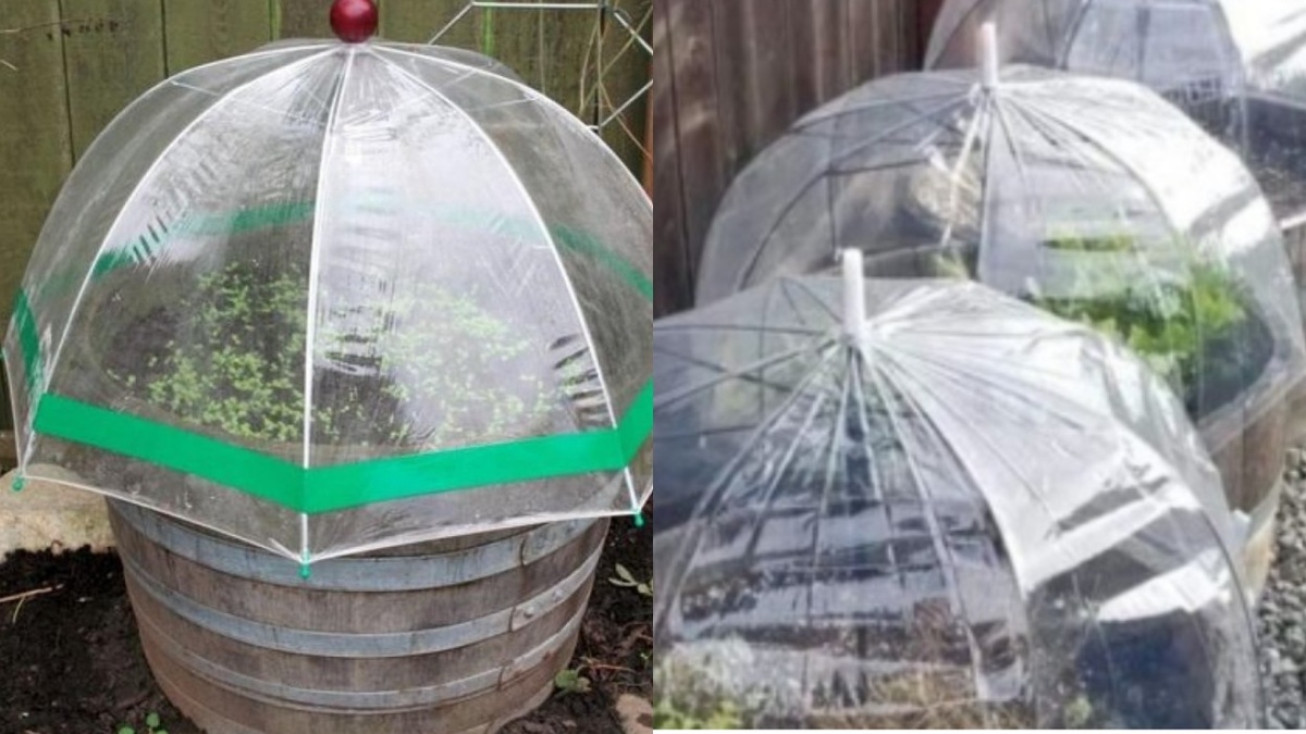 Мастерю дачные конструкции за 500 рублей в апреле 2025 и считаю эту разработку самой удачной. Трансформер из двух зонтов позволяет менять высоту от 40 сантиметров до 1.8 метра. В нем удобно выращивать любые культуры - от салата до высокорослых томатов.