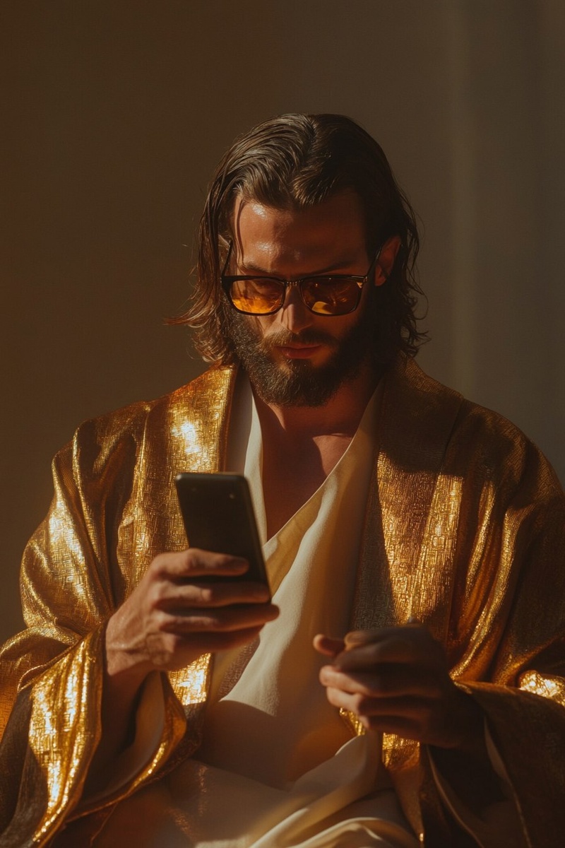 Создано на основе запроса: the last stylish gucci jesus wearing black small rectangular thin glasses, close up portrait photographed by andreas gursky and jeff wall. pantone gradient neon Color concept by Gregory Crewdson. The close up portrait of the holy wa taken with a high-resolution medium format camera. The modern stylish gucci coat is made of plastic phones. jesus himself looks classy in his golden phone . --- Автоперевод: Последний стильный Гуччи Иисус с черными маленькими прямоугольными тонкими очками, в крупном портрете, сфотографированном Андреасом Гурским и Джеффом Уоллом. Необычно получилось? 🤔 https://dzen.ru/id/65c0c65c86e4f837c27b24d7 #ИИ #AI #нейросеть #midjourney #art